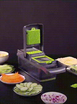Incluye 8 cuchillas intercambiables para cortar, rebanar y rallar fácilmente.